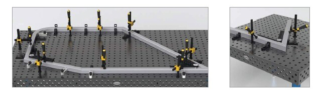 角度器可連續(xù)調節(jié)0°~180°之間的任意角度,從側面圓盤刻度上讀數(shù),當調節(jié)到所需要的角度時,擰緊側面的夾緊螺絲即可。兩夾角臂上分別有系統(tǒng)孔和槽,可以在孔和槽中連接其他定位夾具模塊用于定位或夾緊。